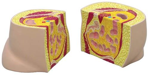 La obesidad puede ser provocada por varios factores y puede adquirir diversas formas; este modelo de tipos de obesidad M50 Erler Zimmer representa una obesidad ginoide (en forma de pera) y una obesidad androide (en forma de manzana) ambas con propiedades particulares.