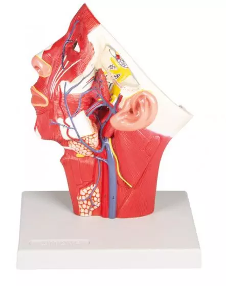 De alta calidad, este modelo didáctico con un gran nivel de detalle es perfecto para estudiantes y profesores de medicina que quieran estudiar en detalle la anatomía de la cabeza humana.
