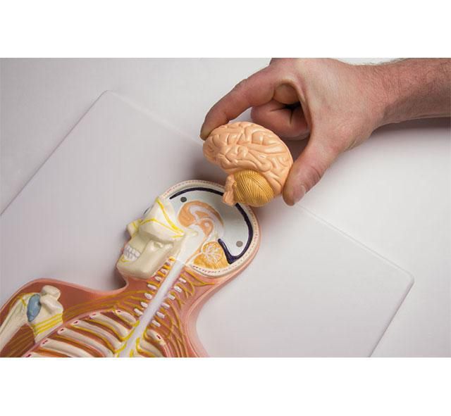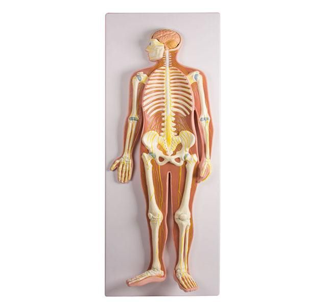 El sistema nervioso permite el buen funcionamiento del cuerpo. Este modelo de sistema nervioso humano Mediprem en relieve muestra una perspectiva general periférica y central del sistema nervioso humano. El esqueleto anatómico del sistema nervioso Mediprem ha sido creado a una escala de 1/2 con la cabeza abierta. De esta forma, se muestran el cerebro y el cerebelo con una buena ilustración del recorrido de los principales nervios en el esqueleto.