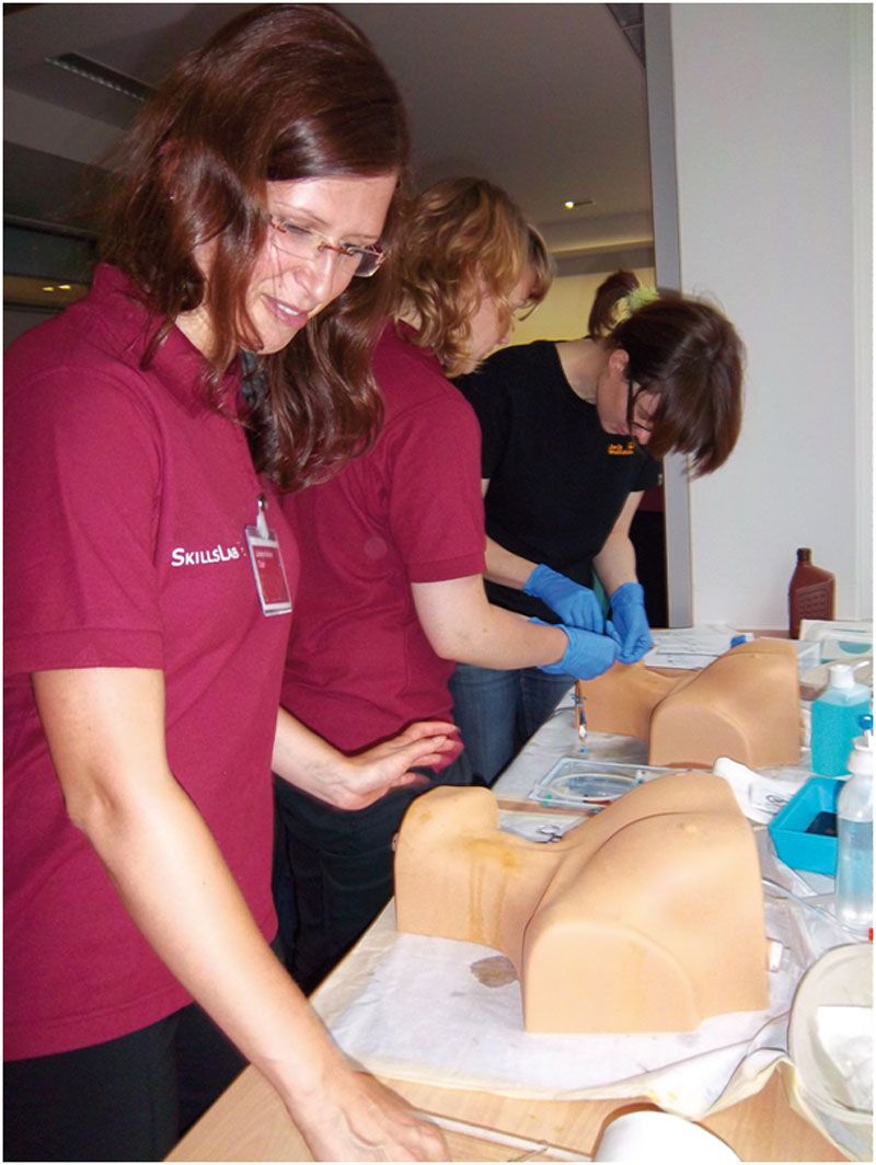 El Modelo femenino para la simulación de la punción venosa Erler Zimmer 7003 no deja ningún rastro después de un pinchazo, lo que permite que el siguiente usuario no esté influenciado por ninguna incisión previa. Una pulsación se puede generar dentro de la vena yugular, para facilitar la orientación de los estudiantes.