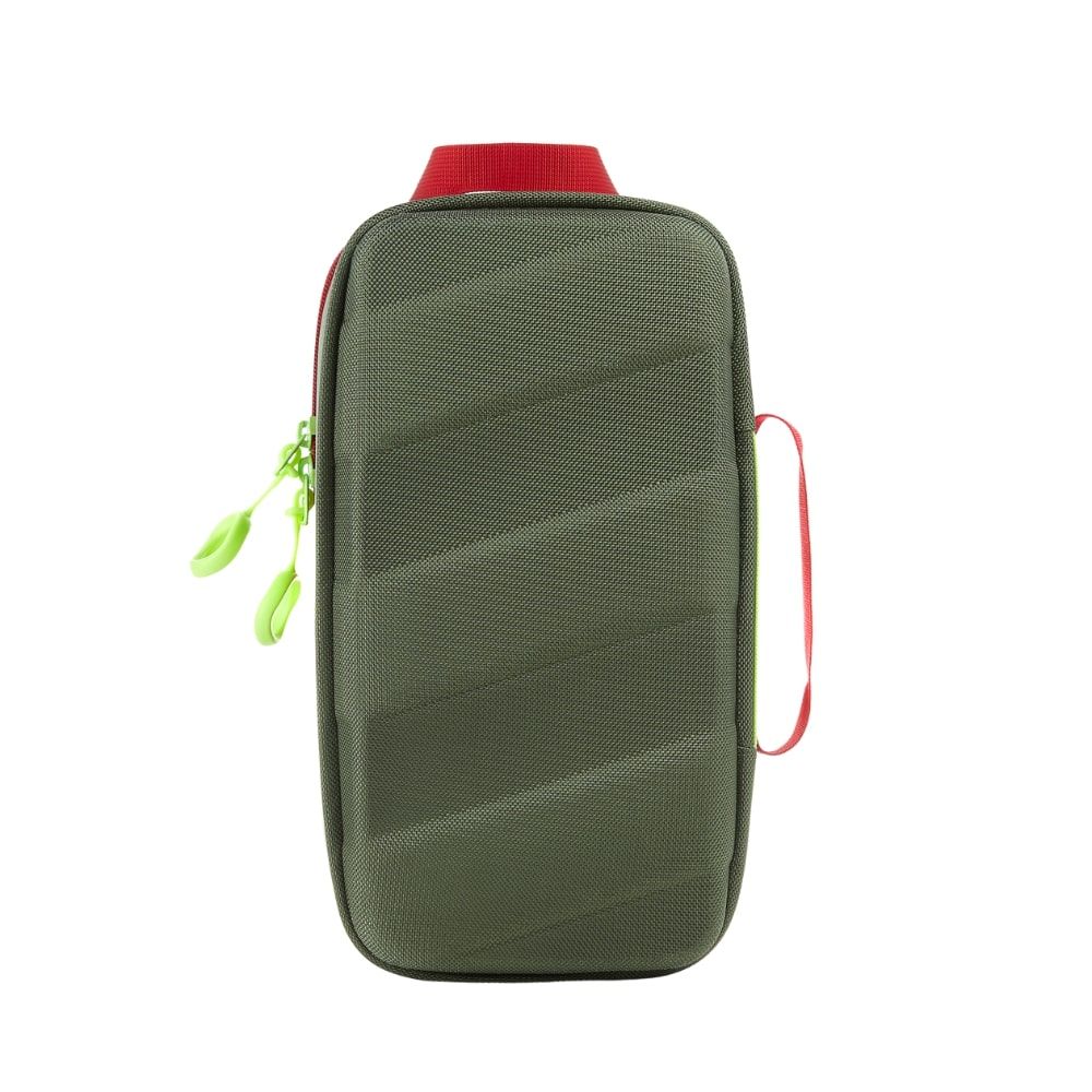 Un estuche rígido integrado está especialmente diseñado para asegurar sus botellas de cristal y medicamentos delicados. Con sus cremalleras de longitud completa, este maletín plegable facilita la visión y el acceso a todo su contenido. Las bandas elásticas mantienen los frascos en su sitio, mientras que los bolsillos de malla añaden opciones flexibles de almacenamiento.