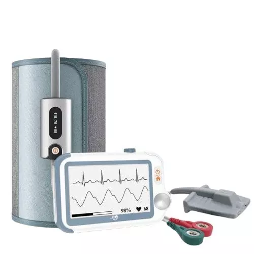 El Viatom Checkme Pro es un monitor portátil e inalámbrico diseñado para realizar un seguimiento de los parámetros vitales en tiempo real. Este dispositivo compacto y versátil es adecuado para cuidados ambulatorios, servicios de urgencias, cirugía y telemedicina, ya que ofrece una monitorización flexible y remota.
