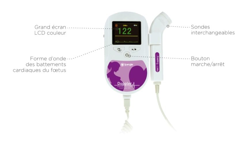 Monitor Fetal Doppler Spengler - Sonda 2, 5 y 8 Mhz opcional - Monitor Doppler para el examen del feto - Se utiliza en los hospitales, en el consultorio médico o en casa - Dimensiones (Largo x Ancho x Alto): 135 x 92 x 29 mm - Peso: 245 g - Garantía: 1 año.