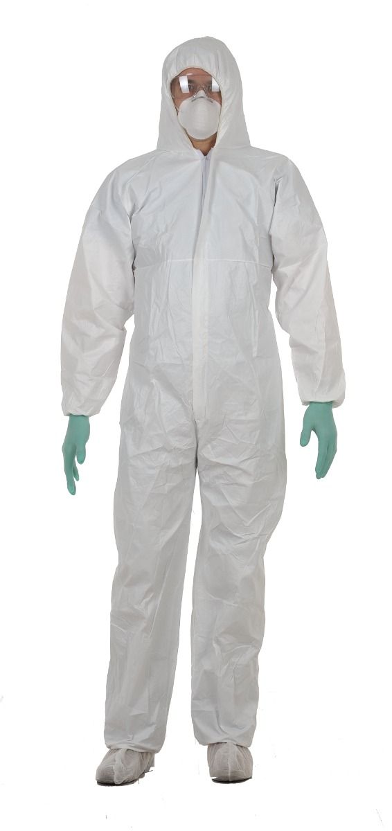 Cubre todo el cuerpo gracias a la capucha integrada y a los puños, tobillos y cara elásticos. Su cierre de cremallera con solapa garantiza una colocación rápida y reduce el riesgo de contaminación al vestirse.