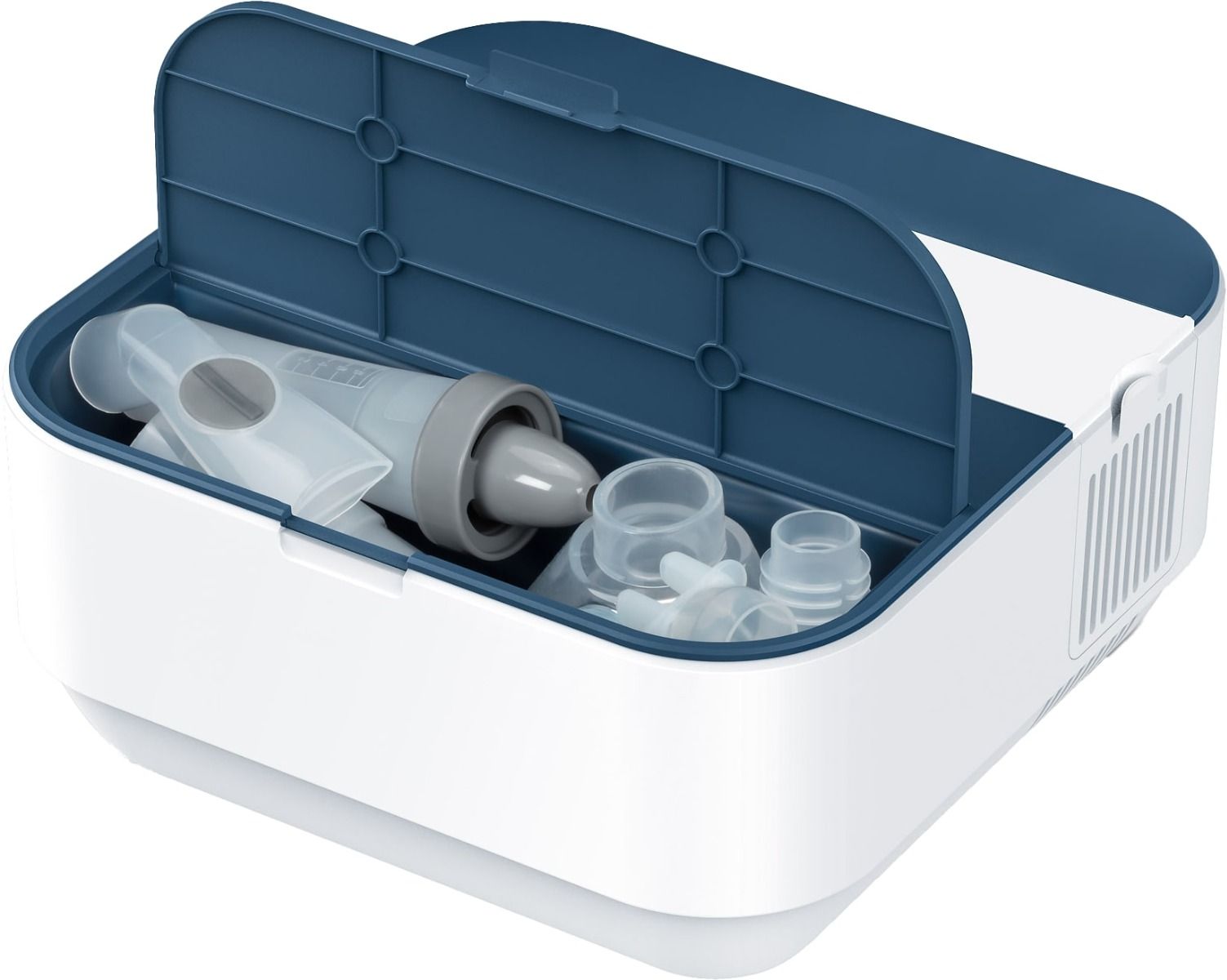 Equipado con un compartimento de almacenamiento integrado para el kit de nebulización, el nebulizador IH 28 ofrece una organización conveniente y un almacenamiento fácil de los accesorios. Alimentado por corriente eléctrica, garantiza un uso continuo y sin interrupciones, brindando tranquilidad durante las sesiones de tratamiento.