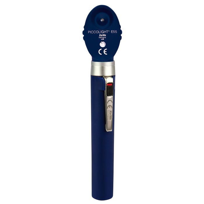 Oftalmoscopio Kawe Piccolight E55 - 5 Diafragmas - Disponible en 3 colores : Night, Stone, Sky - Bombilla de vacío 2,5 V - Mango a pilas ( Tipo AA) - Óptica de precisión esférica - Con rueda de lentes de corrección, corrección en escalones de +20 hasta, 20 dioptrías