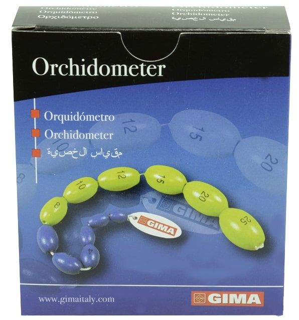 El orquidómetro de madera para niños de Gima, la herramienta esencial para evaluar el volumen testicular en pacientes jóvenes.