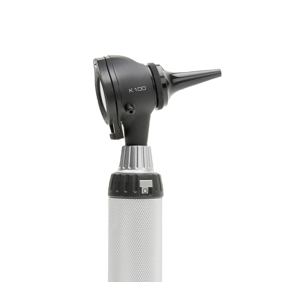 Un otoscopio de diagnóstico económico con iluminación Xenón Halógena directa. Ventana de visión acrílica con 3 aumentos . El cabezal es negro por dentro para eliminar reflejos.