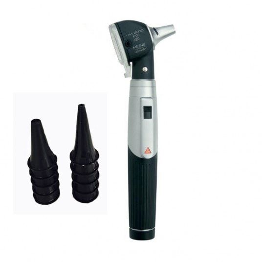 - Cabezal de Otoscopio Heine mini 3000 LED F.O, sin mango ni accesorios. Se trata del modelo básico. No se entrega ningún manguito con este modelo.