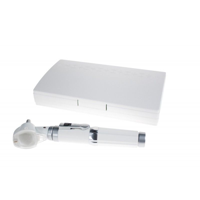 El otoscopio SmartLed F/O LED blanco Spengler cuenta con una mango y una cabezal con una lupa integrada. La bombilla LED emite una luz blanca intensa que permite ver claramente la cavidad del oído y realizar el examen médico en las mejores condiciones posibles. Los espéculos también están incluidos con el otoscopio para disfrutar de un dispositivo completo para el diagnóstico del oído.