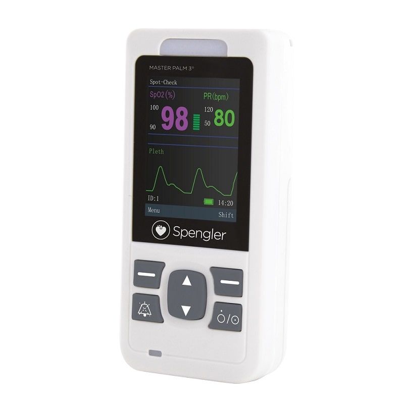 El saturómetro Master Palm 3 está equipado con una gran pantalla HD con función de rotación automática para facilitar la lectura de los valores medidos. También, dispone de dos modos de visualización, con o sin curva pletismográfica. La batería brinda hasta 14 horas de vida útil. El pulsioxímetro Spengler Master Palm 3 es extremadamente versátil y fácil de usar: mide la cantidad de hemoglobina en la sangre en tan sólo unos segundos.