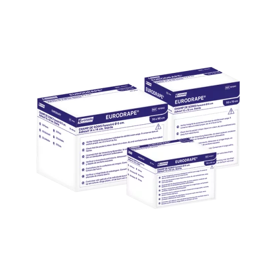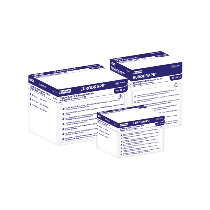 | Referencia | Champs-de-soins-stériles-fenestrés-adhésifs-Euromedis-Eurodrape |