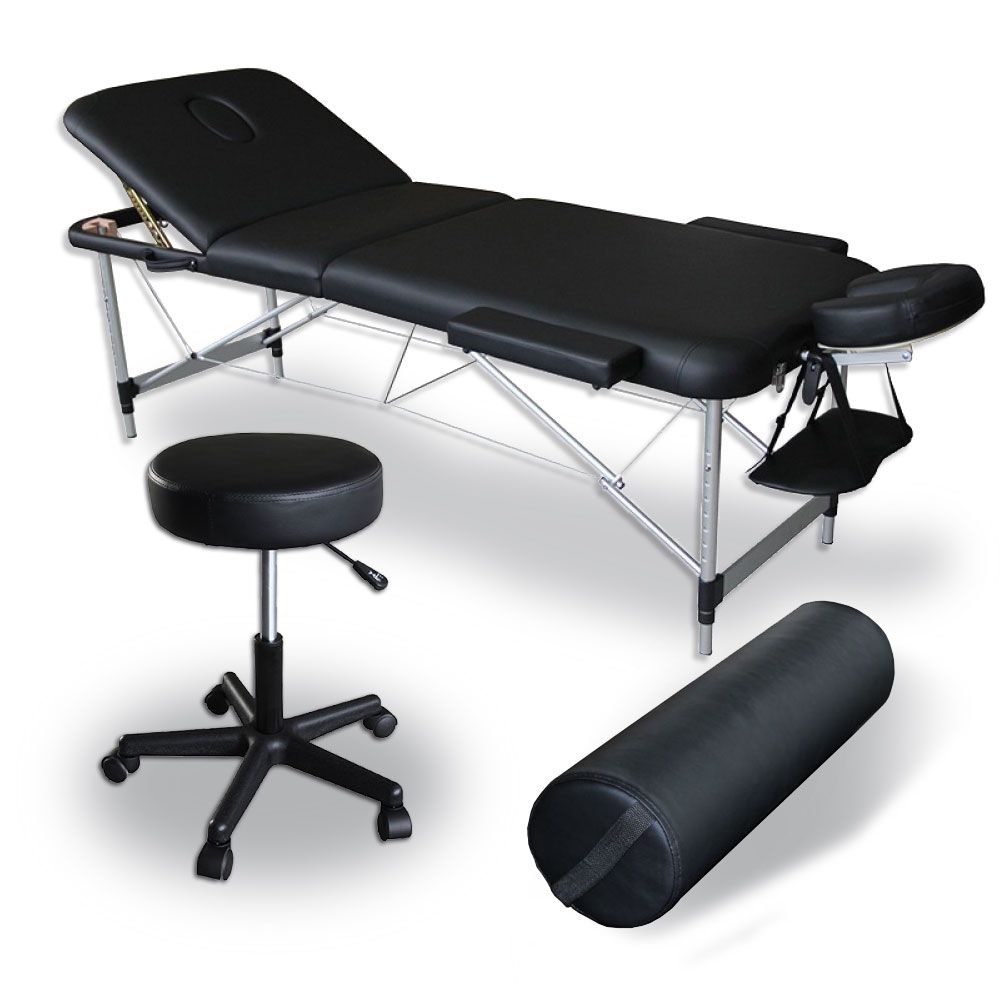 - Camilla de masaje plegable Eco Pro Aluminio con taburete giratorio clásico y cojín de masaje