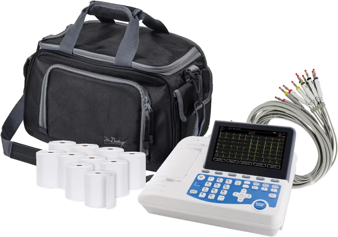 Aproveche el pack promocional con el ECG Spengler Cardiomate 3 (3 pistas) con interpretación + Papel ECG original del fabricante Spengler para Cardiomate 3 Spengler (5 rollos) + bolsa de transporte Smart Medical Bag