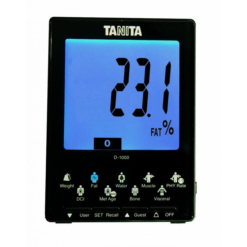 Esta Pantalla display TANITA D-1000 BK muestra nueve medidas de su composición corporal. La transferencia de resultados se hace de forma inalámbrica a través de las básculas compatibles con esta pantalla: el analizador de composición corporal Tanita BC 1000.