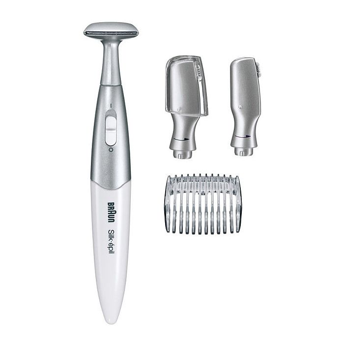 La Perfiladora Silk-épil Bikini Styler Braun FG1100 viene con cabezales de corte diferentes, para usos diversos, dispuestos de un contorno especial para eliminar de forma precisa y segura el vello indeseado de cualquier curva de su cuerpo, cara o línea del bikini.