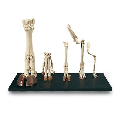Esta serie permite una comparación demostrativa de las diferentes formas de pies de mamíferos. Consistentes en esqueletos de pies de caballo o vaca, cerdo y oveja, con pezuñas montadas por separado, así como esqueletos de patas con omóplato del gato o la liebre y el perro. Montados sobre pedestal de madera.