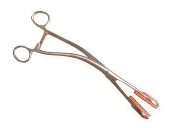 La pinza para cesárea de Comed tiene una longitud y un espesor adecuada para animales de tamaño relativamente grande. El veterinario debe regularmente desplazarse para gestionar partos difíciles en situaciones de urgencia, por ello es muy importante que cuente con el instrumental adecuado para ofrecer los mejores cuidados a los animales, como estas pinzas de cesárea con extremos de goma.