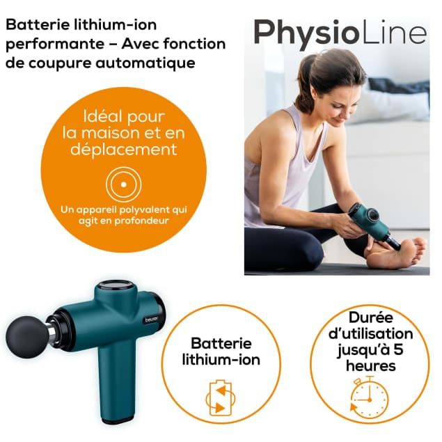 Con sus luces LED que muestran el estado de la batería y el nivel de intensidad en tiempo real, este dispositivo ofrece un uso práctico. Su batería de iones de litio te proporciona hasta cinco horas de autonomía, lo que te permite disfrutar plenamente de tu sesión de masaje sin restricciones.
