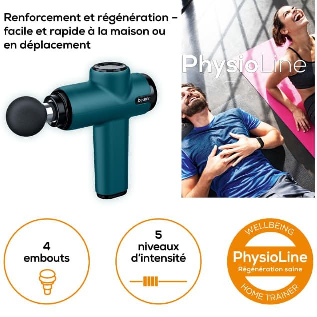 Este dispositivo de masaje te ayuda a liberar tensiones y a aliviar los músculos fatigados, favoreciendo una recuperación óptima después del ejercicio físico o un largo día de trabajo. Date el confort y la eficacia que necesitas con la pistola de masaje muscular MG 99 Beurer.