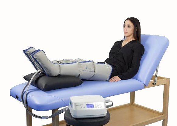 Este equipo consta de un compresor de aire conectado a varios accesorios inflables adaptados a la zona específica, como botas para las piernas, mangas para los brazos, un pantalón corto para los glúteos o un cinturón para el abdomen y las caderas. Los accesorios están equipados con varias células que se inflan y desinflan para ejercer diferentes tipos de presiones.