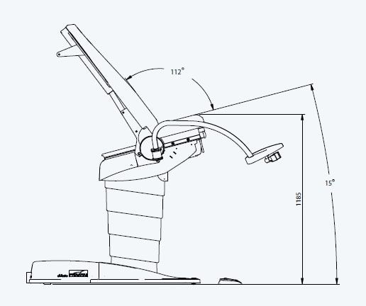 El sillón Promotal gMotio tiene un rango de ajuste de altura de 51 cm a 118,5 cm, proporcionando una accesibilidad óptima para sus pacientes y una ergonomía ideal para los profesionales. La posición de inicio preprogramada de 51 cm puede alcanzarse instantáneamente pulsando el botón "home", lo que le permite entrar en la consulta de forma rápida y fluida.