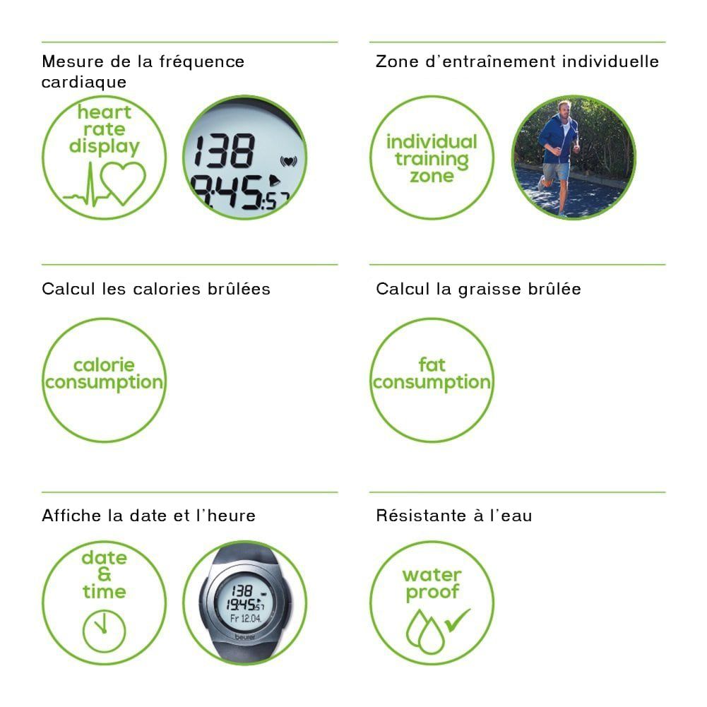 Pulsómetro Beurer PM 25 - Para atletas principiantes - Ritmo cardíaco medio y máximo - Cálculo de consumo calórico en kcal + combustión de grasas en g - Resistente al agua 30 m - Incluye 1 Cinta pectoral y 1 Funda - 3 años de garantía