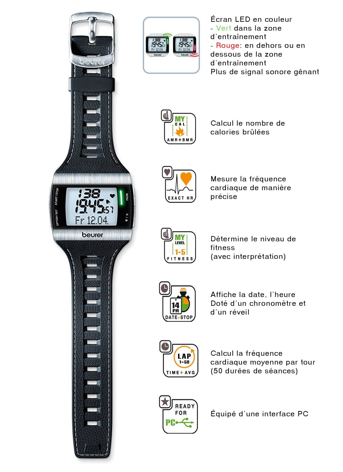 Pulsómetro Beurer PM 62 - Pantalla de acero inoxidable - Cálculo del metabolismo basal - Cálculo de consumo calórico en kcal + combustión de grasas en g - Test fitness - 3 años de garantía