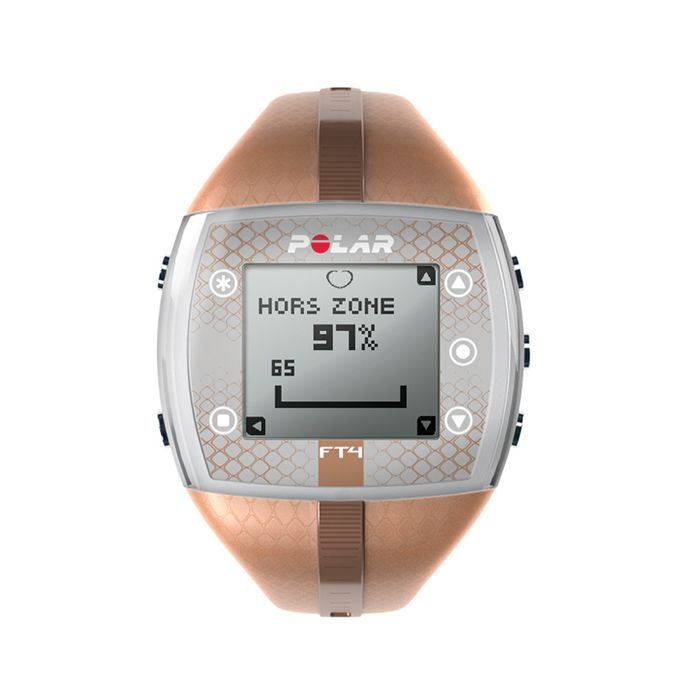 Pulsómetro FT4 Polar Bronce - Mejora su forma - Funciones esenciales basadas sobre su frecuencia cardiaca para un entrenamiento simple - Ficheros memorias : 10 - Hermetismo : 30m - Navegación facil - Peso : 33 g - Referencia : 900036752