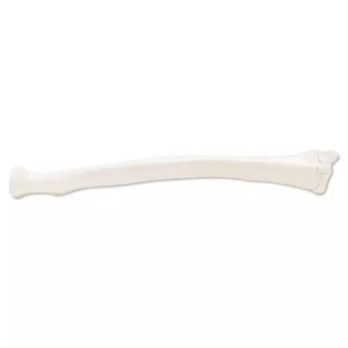 Este modelo anatómico está fabricado en PVC, un material resistente y de gran calidad. Además, tiene el mismo color que el hueso real con el fin de reproducir fielmente el radio. En cuanto a su peso, este modelo anatómico sólo pesa 50 gramos. Es muy ligero, por lo que puede ser fácilmente transportable.