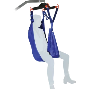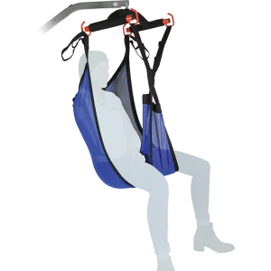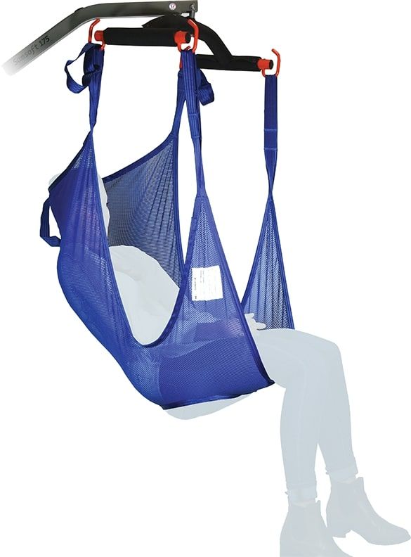 La eslinga hamaca de inodoro de red de baño para grúas de pacientes facilita las transferencias en posición tumbada, al tiempo que garantiza una sujeción óptima y un confort estudiado. Su diseño recortado en los laterales y su corte envolvente garantizan una ergonomía ideal para su uso en el baño, la ducha, la piscina o al levantar a personas del suelo.