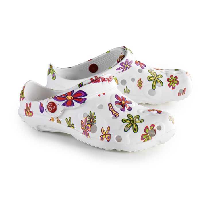 Muy cómodos, blandos y se adaptan perfectamente a los pies, los zuecos sanitarios para mujer Schu'zz Globule Pop Flower son perfectos y no hacen transpirar. Sin bacterias y sin olor, estos zapatos son perfectos para hospitales y clínicas.
