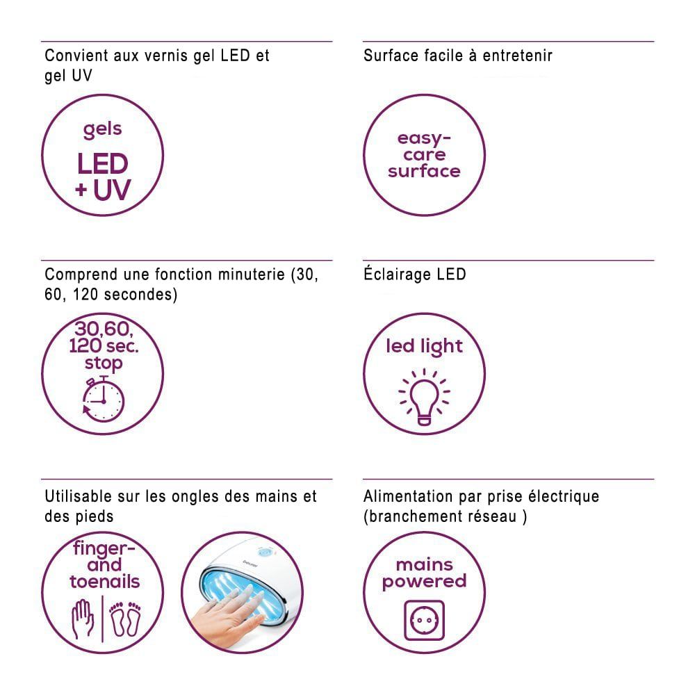 La máquina para secar uñas Beurer MP 48 es ideal para endurecer las manicuras con esmalte de gel para luz UV y LED.