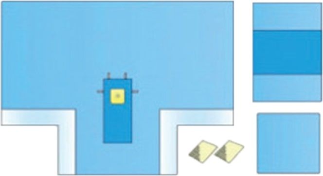 - Un mantel de 100 x 150 cm con camino de mesa: al ofrecer una protección ampliada para el área de operaciones, este mantel garantiza un entorno estéril esencial. El camino de mesa permite una disposición precisa y una organización óptima de los instrumentos.