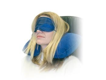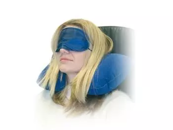 El kit incluye un cojín inflable azul para mantener la nuca derecha de forma cómoda, un antifaz para dormir en cualquier momento del día, incluso cuando es de día sin que la luz moleste, y tapones para los oídos para no escuchar los sonidos externos.