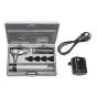 El estuche metálico esta dotado con un otoscopio BETA 400 de F.O. en versión LED, 4 espéculos que son reutilizables y 10 espéculos de uso único allSpec. Los espéculos miden 5 x 2.5 mm Ø et 5 x 4 mm Ø). El otoscopio Heine BETA 400 LED F.O está conformado con una epesidad única de 4,2x. Lo que permite tener una representación minusiosa con estructuras anatómicas.