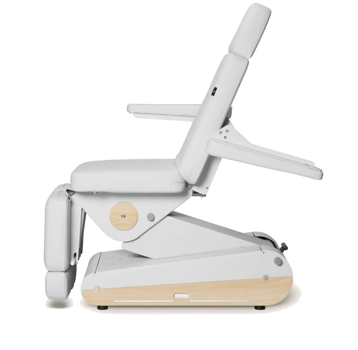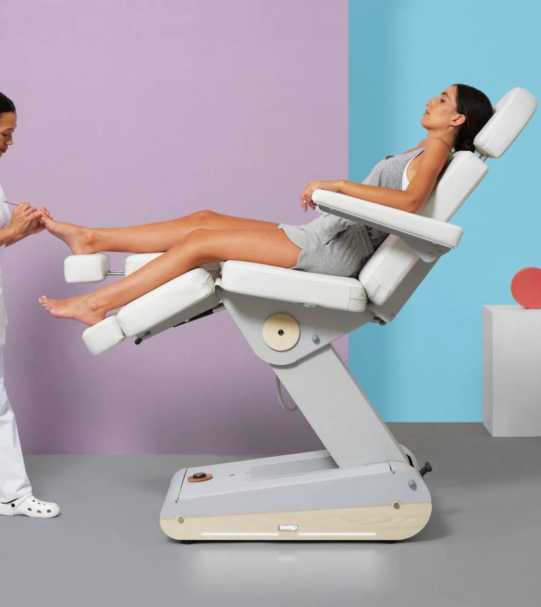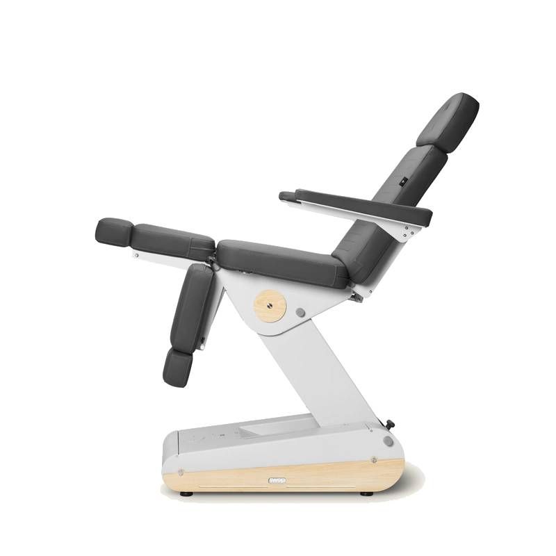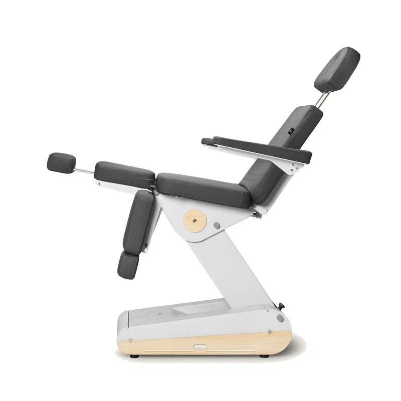 Diseñado para consultas de podología y centros de estética avanzada, el sillón eléctrico Naggura Swop P3 PRO combina un diseño innovador, tecnología punta y una ergonomía óptima. Equipado con tres potentes motores, permite el ajuste independiente del respaldo, el asiento y los reposapiernas, proporcionando un posicionamiento preciso para todo tipo de tratamientos técnicos.