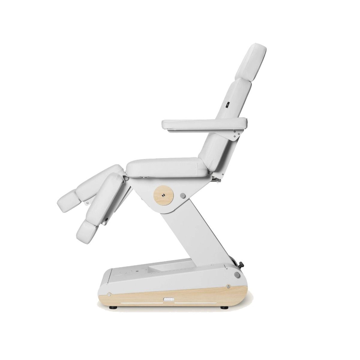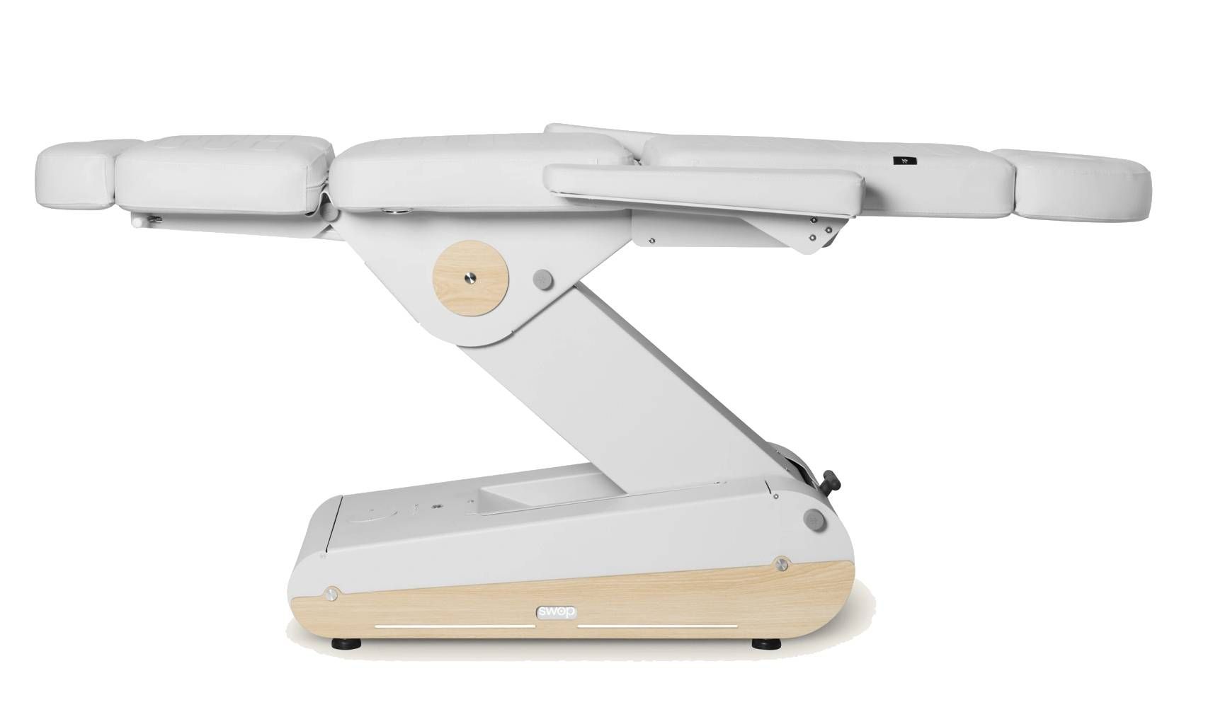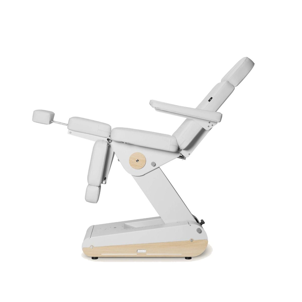 Diseñado para consultas de podología y centros de estética avanzada, el sillón eléctrico Naggura Swop P3 PRO combina un diseño innovador, tecnología punta y una ergonomía óptima. Equipado con tres potentes motores, permite el ajuste independiente del respaldo, el asiento y los reposapiernas, proporcionando un posicionamiento preciso para todo tipo de tratamientos técnicos.