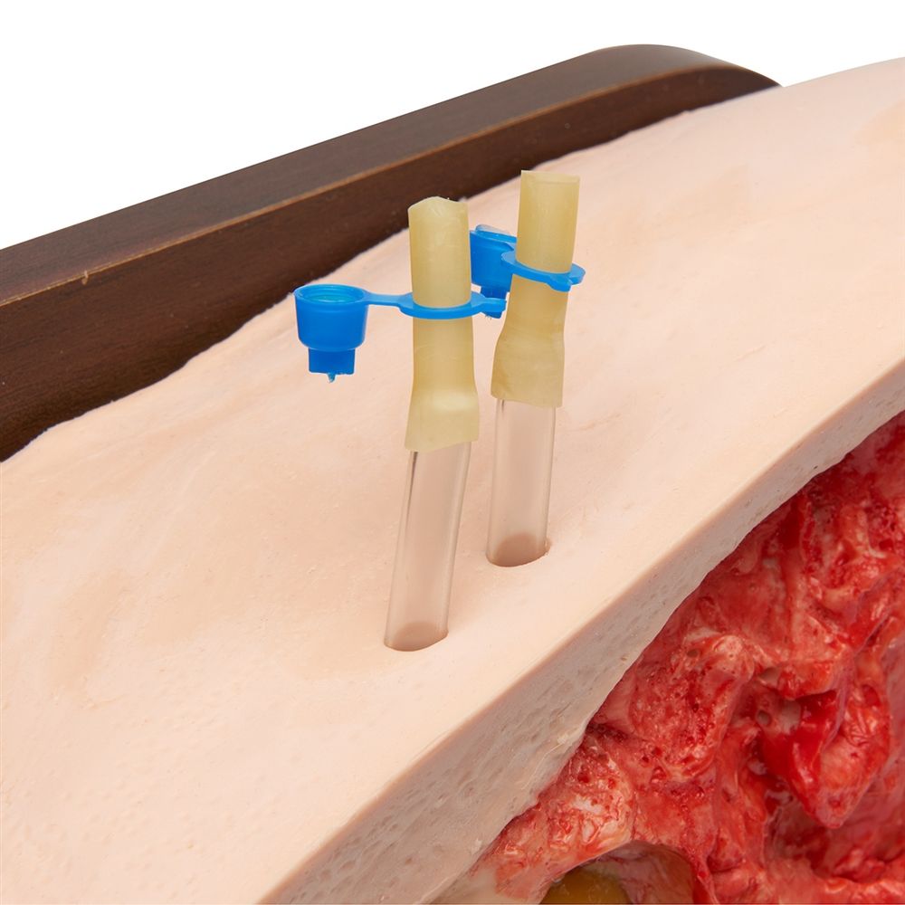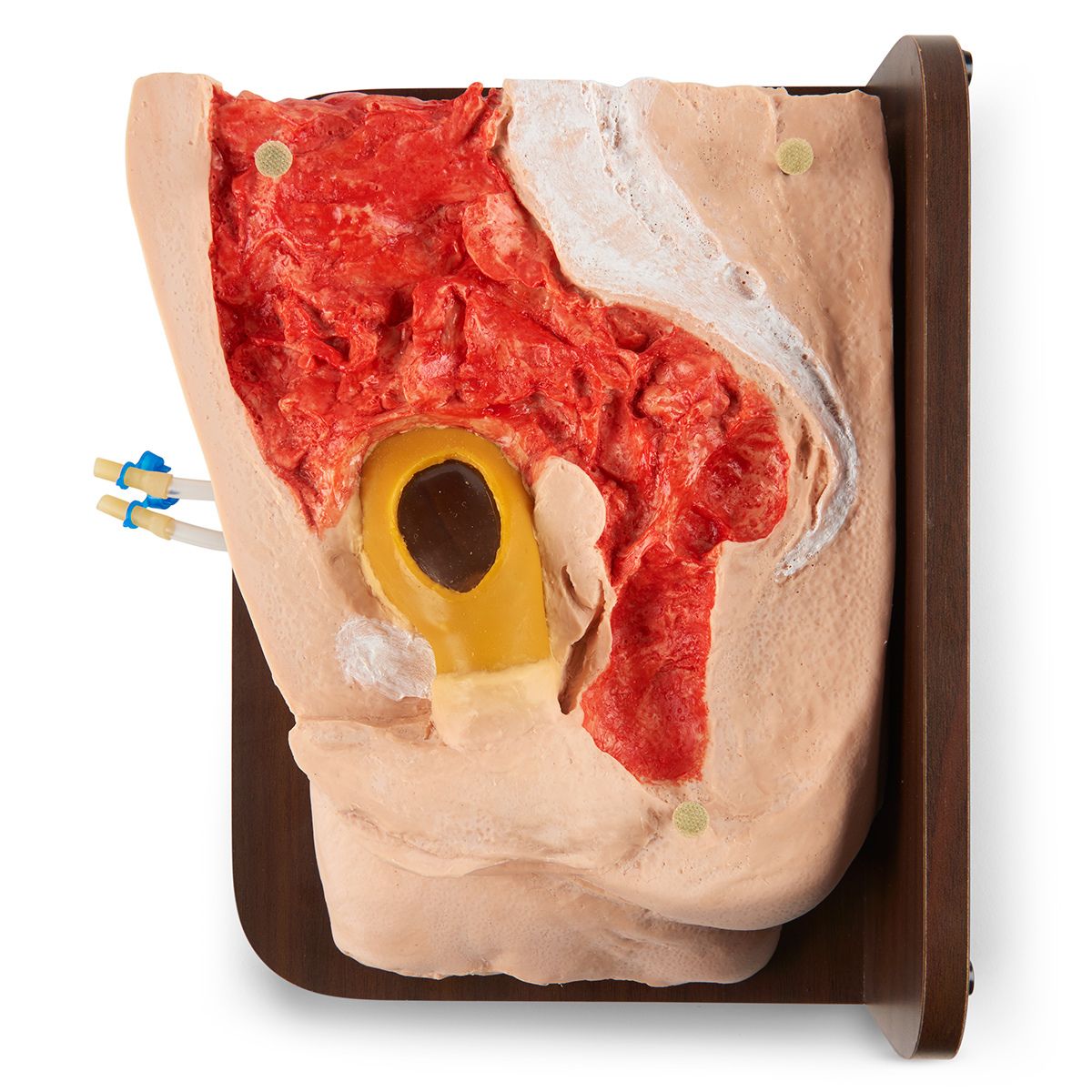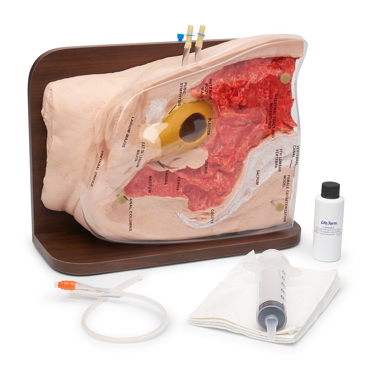 El Simulador de cateterismo femenino Cath-Ed II 3B Scientific W44664 permite practicar la cateterización femenina. Incluye la mayoría de funciones presentes en el Simulador Cath Ed I masculino con la excepción de que la vulva se ha modelado al completo para identificar la uretra y aprender a separar los labios genitales.