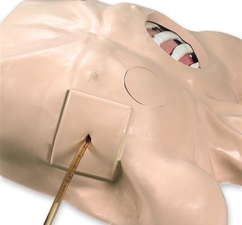 Este completo maniquí de entrenamiento para profesionales y estudiantes de medicina pesa 5 kilos y permite una práctica realista de un neumotórax gracias a los siguientes elementos: