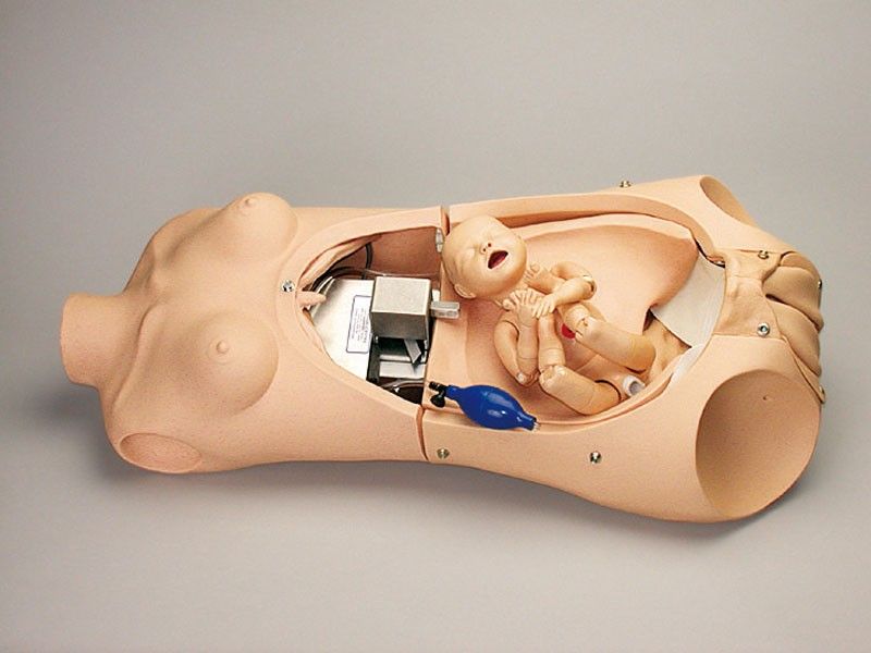 Este completo simulador de parto permite medir la frecuencia cardíaca del feto y la dilatación del cuello del útero. La placenta puede colocarse en múltiples posiciones. Además, para una práctica todavía más completa, se pueden realizar puntos de sutura tras el parto y practicar las maniobras de Leopold.