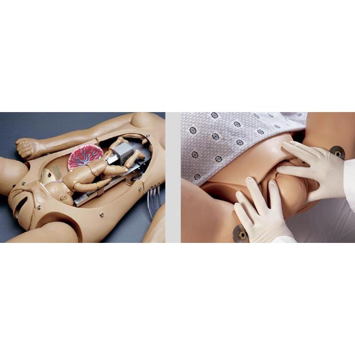 Simulador de parto NOELLE con PEDI Blue Neonate W45177 - Cuerpo femenino completo articulado - Tamaño real - Vías aéreas son intubables con el tórax regulable en altura - Feto articulado con placenta - Entregado con pack completo de uso