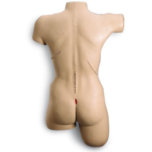 Este simulador consiste de un torso femenino con una piel elástica y fiel al natural con reacción realista a emplastos, esparadrapos y a todas las formas de vendajes. 14 heridas distintas permiten practicar las diferentes técnicas para curar heridas, lavarlas y vendarlas igual que en un paciente de verdad. Los cierres de las heridas son pinzas quirúrgicas y material de sutura que no se pueden quitar.