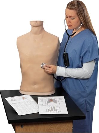 Con el Simulador Entrenador de auscultación y SmartScope W44119 podrá practicar la auscultación de diversos soplos cardíacos y murmullos de pulmón igual que en un paciente de verdad.