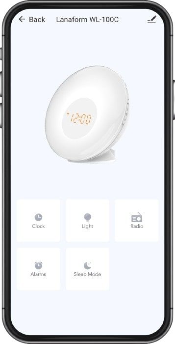 El simulador lumínico de amanecer y anochecer con conectividad Lanaform WL-100C acompaña de forma natural su ciclo de sueño reproduciendo las variaciones de luz del amanecer y el atardecer. Gracias a un aumento gradual de la luz por la mañana y a una suave disminución por la noche, ayuda a regular su ritmo biológico, facilitando el despertar y el sueño, y es particularmente eficaz para los trastornos del sueño asociados a los cambios estacionales o a los cambios de horario de trabajo.