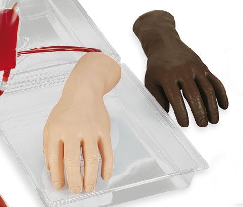 El modelo se encuentra fabricado en un material flexible y realista al tacto donde las venas que atraviesan la mano son visibles en la superficie y palpables de la misma manera que lo son las venas de una persona real. Las venas son accesibles desde el dorso de la mano y al nivel del pulgar lo cual hace que sea posible aplicar las punciones e inyecciones en las zonas habituales a la realidad. En el momento que una aguja se inserta a través de la piel, (hecha en material de vinilo) esta reaccione con realismo y la sensación característica de la aguja que atraviesa la piel para entrar en la vena puede sentirse verdaderamente.