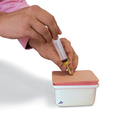 El Simulador para la inyección intramuscular W19375 - 3B Scientific es un dispositivo de practicas, sencillo que imita el tejido muscular auténtico.
