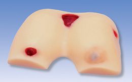 Este modelo de una nalga humana muestra el decúbito en sus grados primero, segundo y tercero y permite practicar los procedimientos de lavado y colocación de apósitos y vestimenta.