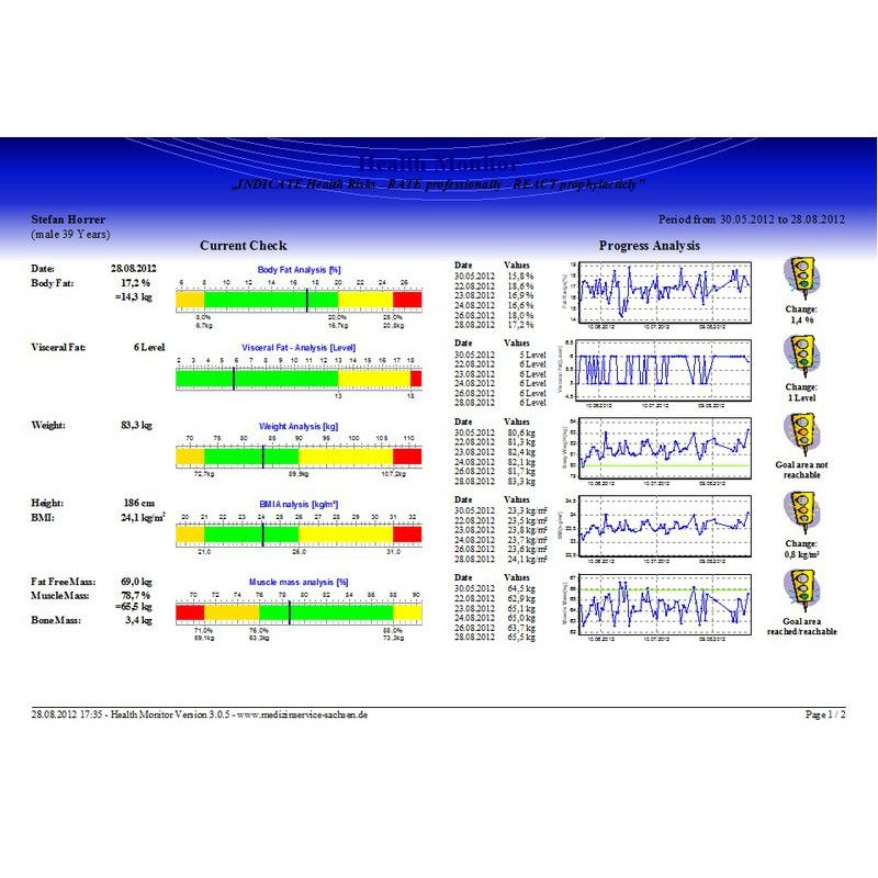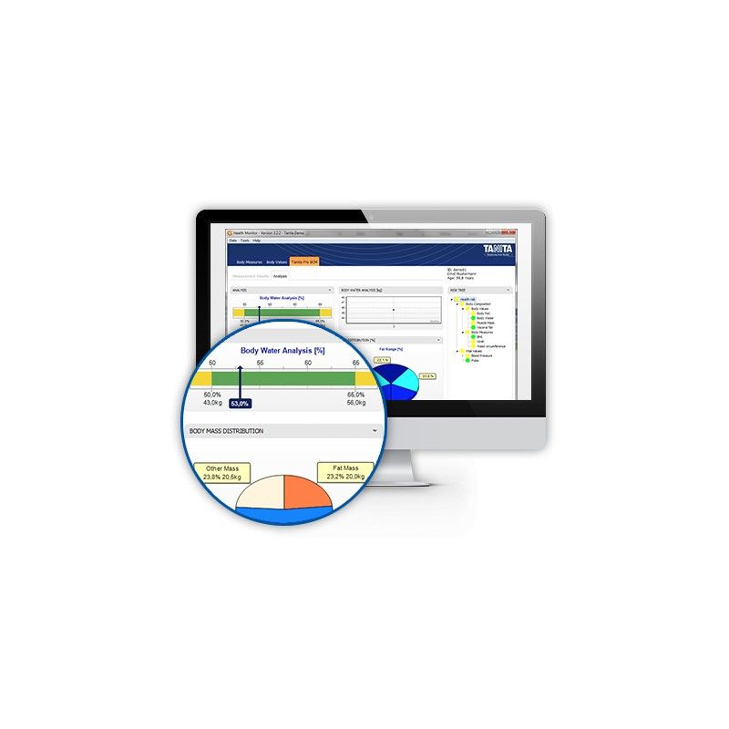 Este Software control de la salud TANITA GMON PRO ha sido creado para conectarse vía RS-232C o USB a cualquier báscula de la gama Tanita para uso profesional. Este software realiza una traducción de las medidas de la composición corporal efectuadas.