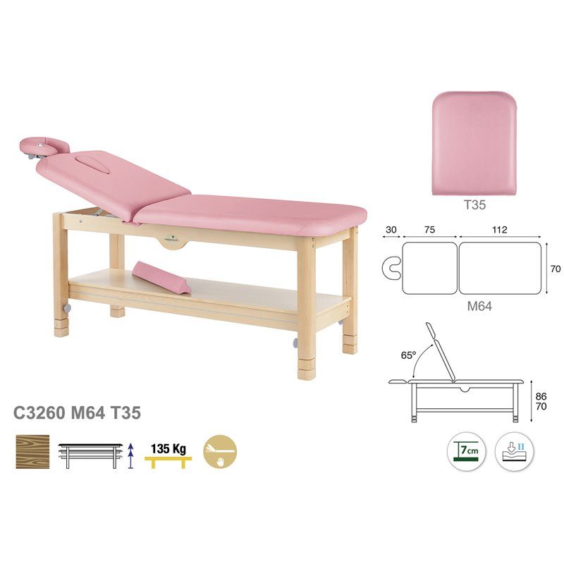 La camilla de masaje fija Ecopostural C3260 es una camilla con altura ajustable fabricada en madera.